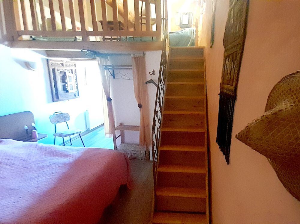 20 m² ouverts sur la vallée de Banon, un lit double au calme, un lit simple en mezzanine pour les enfants, et le chant des oiseaux au réveil. Salle d'eau privative avec vue sur le jardin.