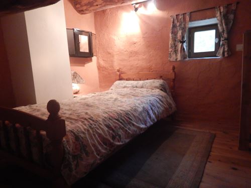 Au niveau principal, un lit double 140 × 190 fait face à la vallée. En hauteur, la mezzanine intimiste abrite un lit simple 90 × 190 pour un enfant ou un adolescent. Un lit d'appoint est disponible sur demande. Salle d'eau et WC indépendant, privés, avec vue sur le jardin.