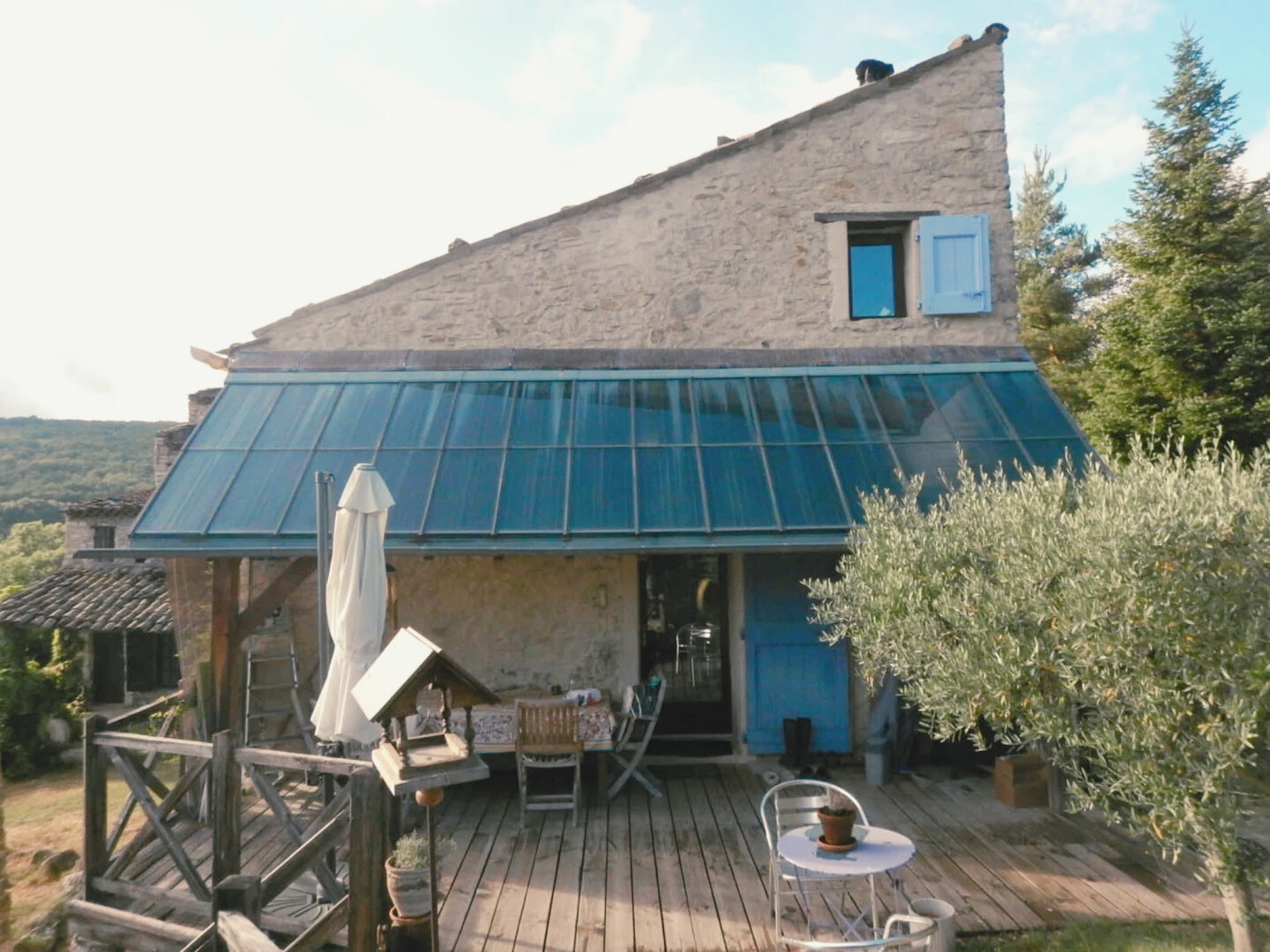 En 2001, Christine et Wolfgang font l'acquisition d'une ruine en pierres perchée à flanc de colline : « un trou avec des pierres autour », comme aimait le dire la mère de Christine. Le couple entreprend alors un chantier de réhabilitation hors du commun. L'objectif : rebâtir la maison en conservant l'empreinte des anciens, les méthodes de construction les plus traditionnelles, tout en y intégrant les connaissances modernes en matière d'économie d'énergie, de recyclage et de phytoépuration.