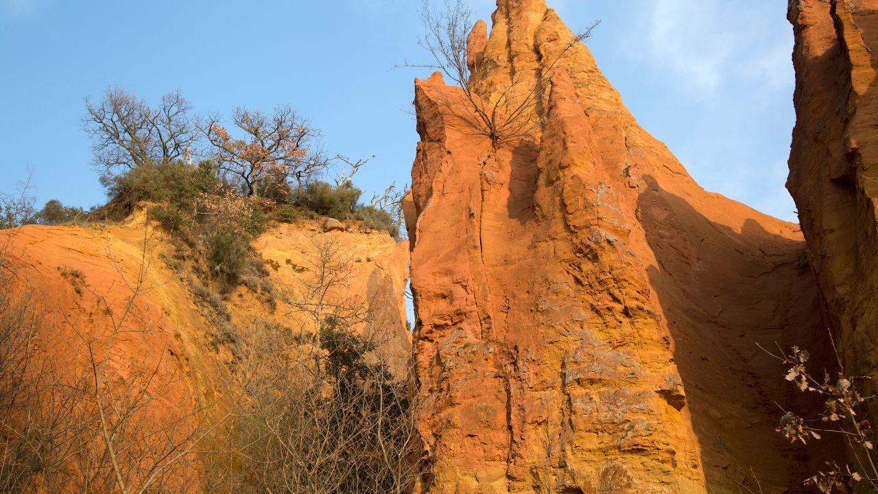 Pour les murs intérieurs, Christine a confectionné elle-même les enduits. Elle est allée ramasser les ocres à Rustrel, haut lieu du Colorado provençal. Les fameuses poudres jaunes et orangées ont été mélangées à du lait de chaux, puis fixées au sel d'Alun. Le résultat : des teintes chaudes et vivantes, sans aucun produit de synthèse.